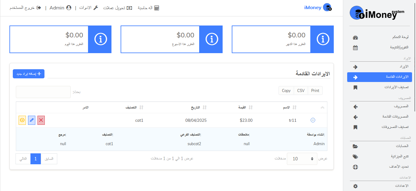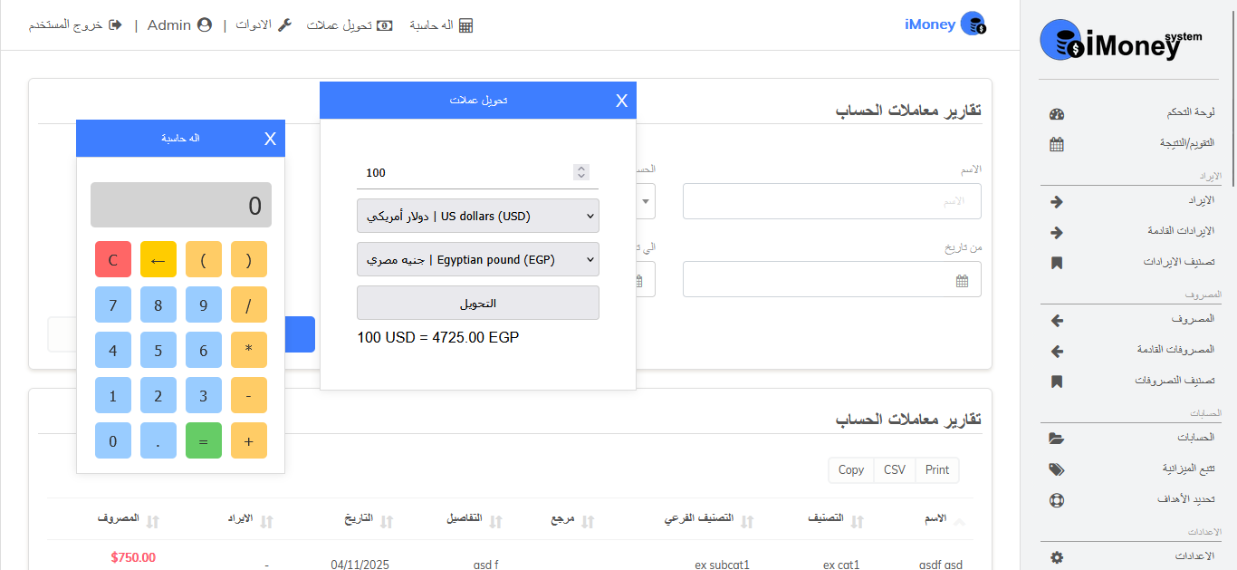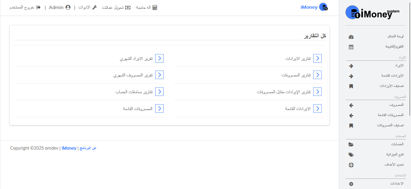 iMoney هو نظام محاسبي شامل يساعدك على إدارة الإيرادات والمصروفات ومتابعة الميزانية بدقة، سواء كنت فرد، شركة، أو مؤسسة.