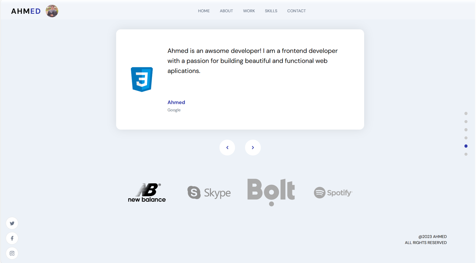 قمنا في شركتنا بتصميم وتطوير هذا الموقع الشخصي لعرض الأعمال والمشاريع السابقة. يتميز الموقع بتصميم عصري وجذاب يتيح للمستخدمين استعراض الأعمال بطريقة منظمة وسهلة.